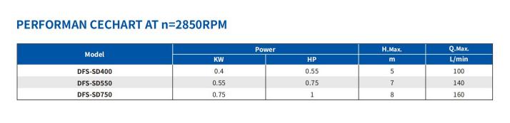 Серия DFS-SD подходит для перекачивания чистой воды в саду, а также чистых жидкостей и неагрессивных химических веществ. Области применения включают бытовое использование, садоводство, орошение и перекачивание пустых резервуаров. Также может перекачивать загрязненную воду (максимальное содержание твердых частиц 30 мм).